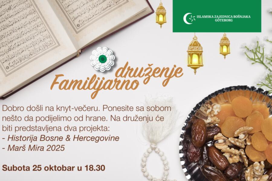 Dobrodošli na familijarno druženje u našem džematu u subotu 25. oktobra sa početkom u 18:30 sati.
