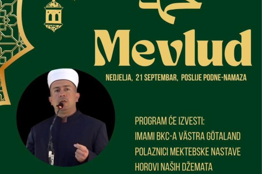 Centralni mevlud BKC-a Västra Götaland će se ako Bog da, održati u džematu Skövde u nedjelju, 21. septembra 2025. godine.