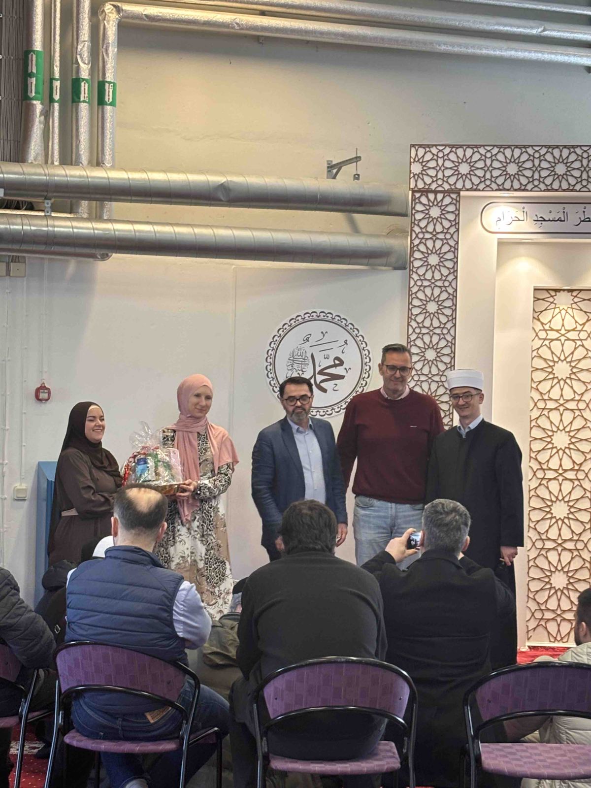 Poslije predavanja, kao da se srce ponovo otvorilo. Na stolovima su bile poslastice naših hanuma, one koje mirišu na djetinjstvo, na kuće naših majki. Uz kahvu i smijeh, nizali su se lagani, iskreni, topli razgovori. Klanjali smo ikindiju zajedno, u safovima koji su izgledali kao da su tu oduvijek.