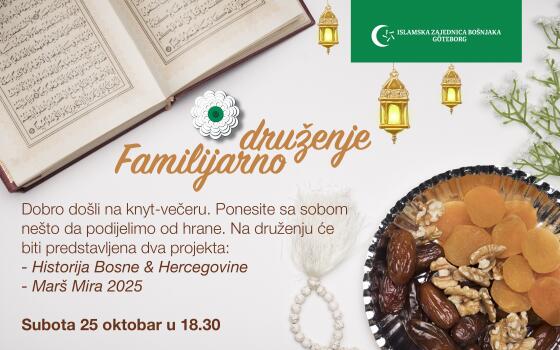 Dobrodošli na familijarno druženje u našem džematu u subotu 25. oktobra sa početkom u 18:30 sati.